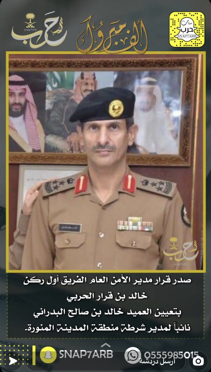 سناب حرب On Twitter صدر قرار مدير الأمن العام الفريق أول ركن خالد بن قرار الحربي بتعيين خالد بن صالح البدراني نائبآ لمدير شرطة منطقة المدينة المنورة Https T Co Cb6xfknw9r